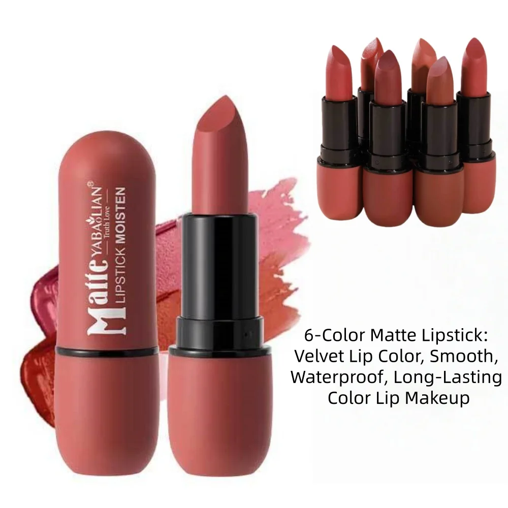 6-Color Matte Lipstick: Velvet Lipstick Smooth Waterproof Mist Lipstick Long lasting Bright Lipstick Top Makeup