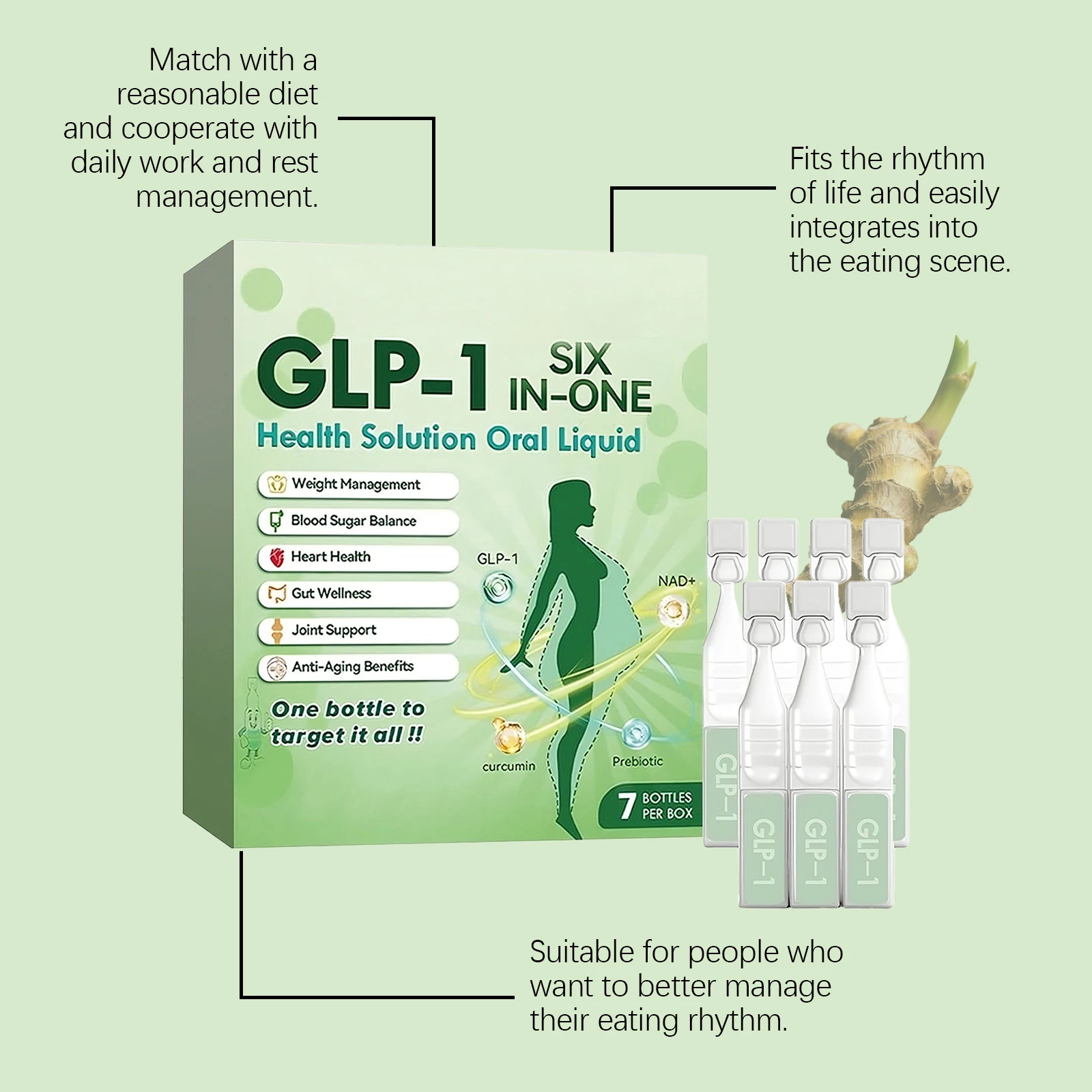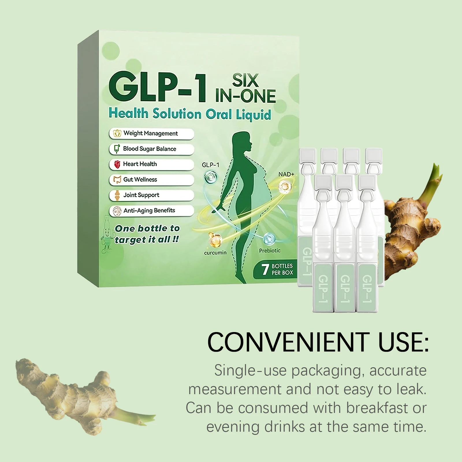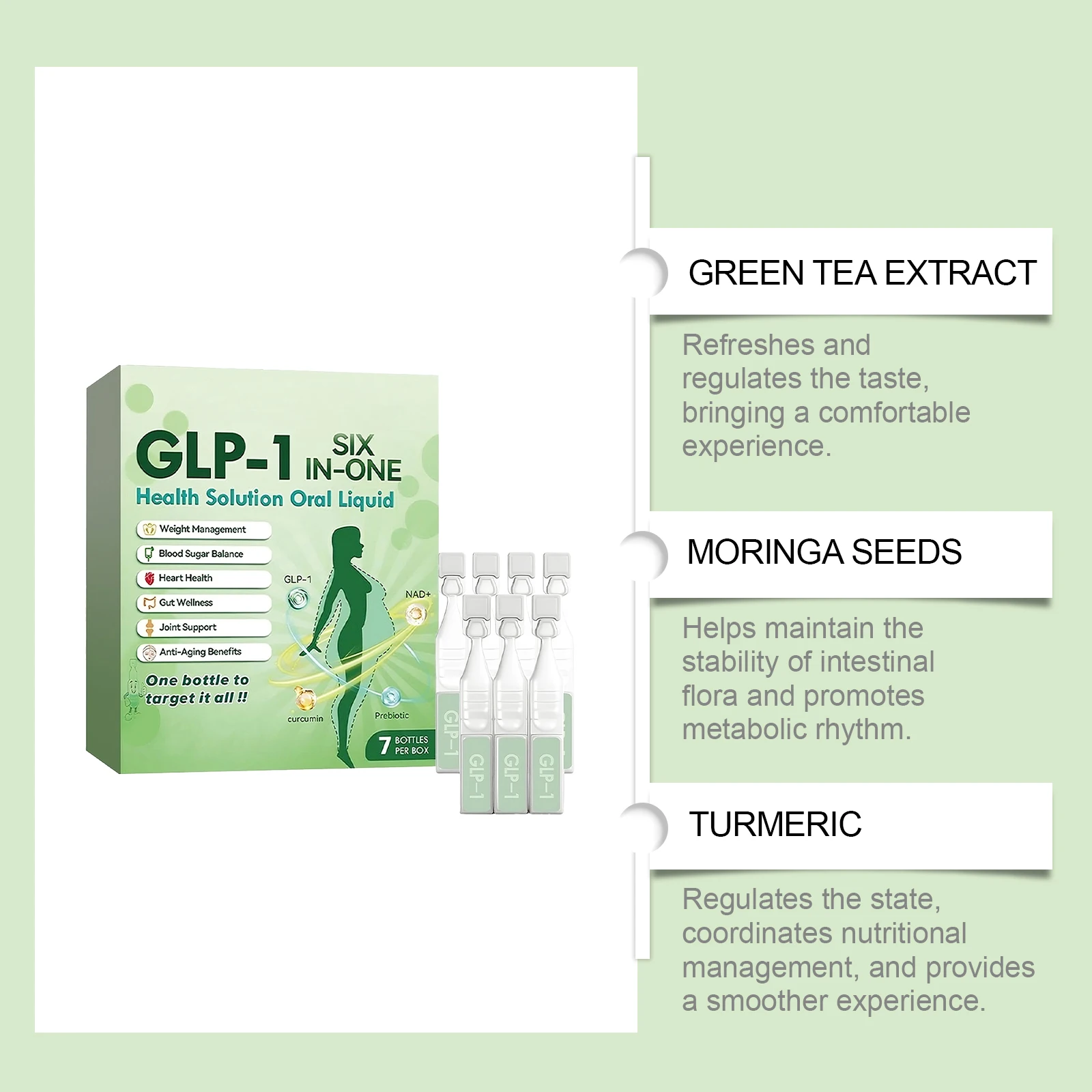 6 in 1 GLP-1 Supplement Liquid Drops NAD Blood Sugar Control Heart Health Knee Joint Support Dietary Supplement for Weight Loss 7ml