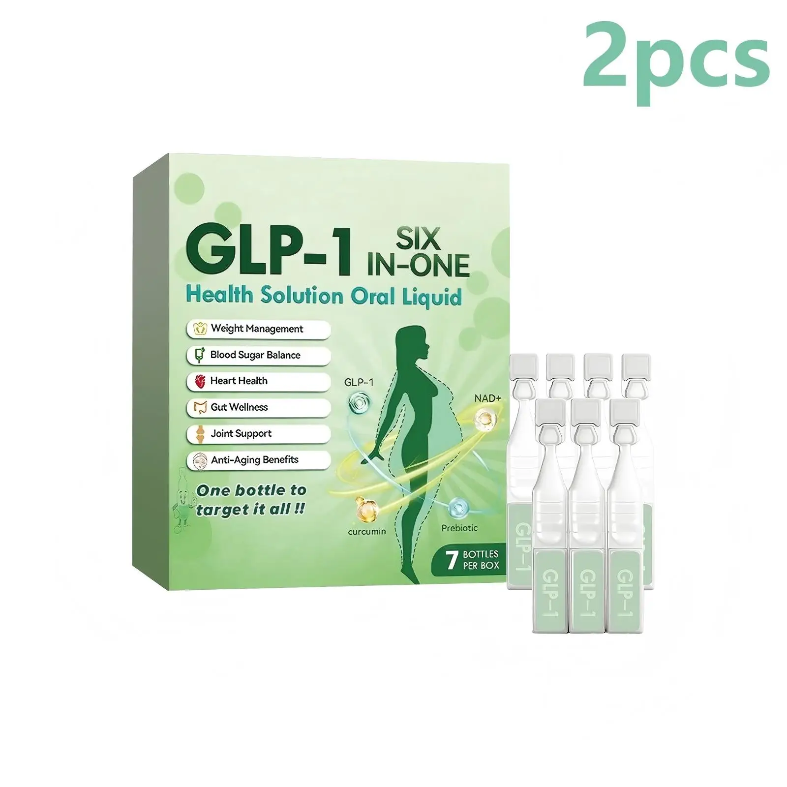 6 in 1 GLP-1 Supplement Liquid Drops NAD Blood Sugar Control Heart Health Knee Joint Support Dietary Supplement for Weight Loss 7ml