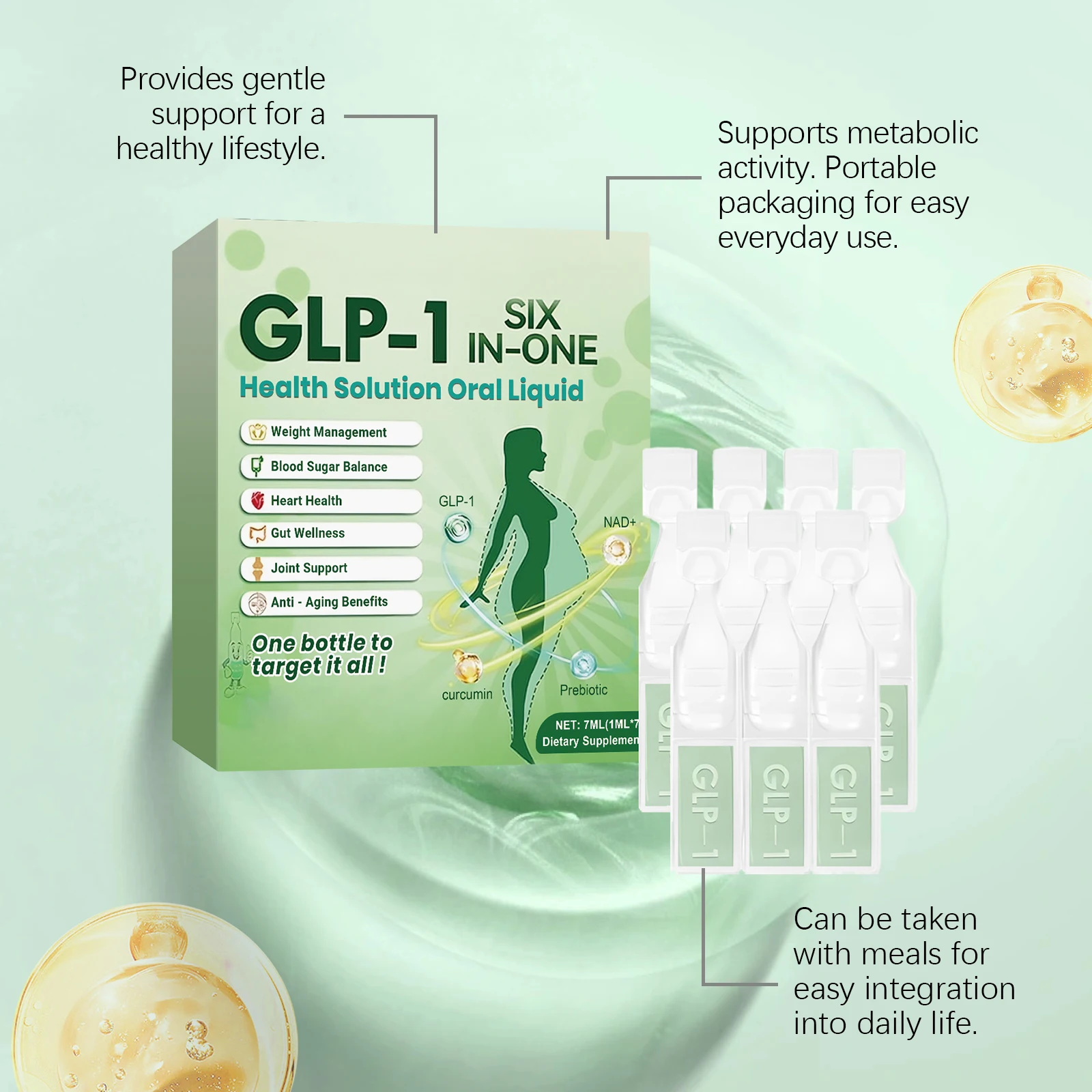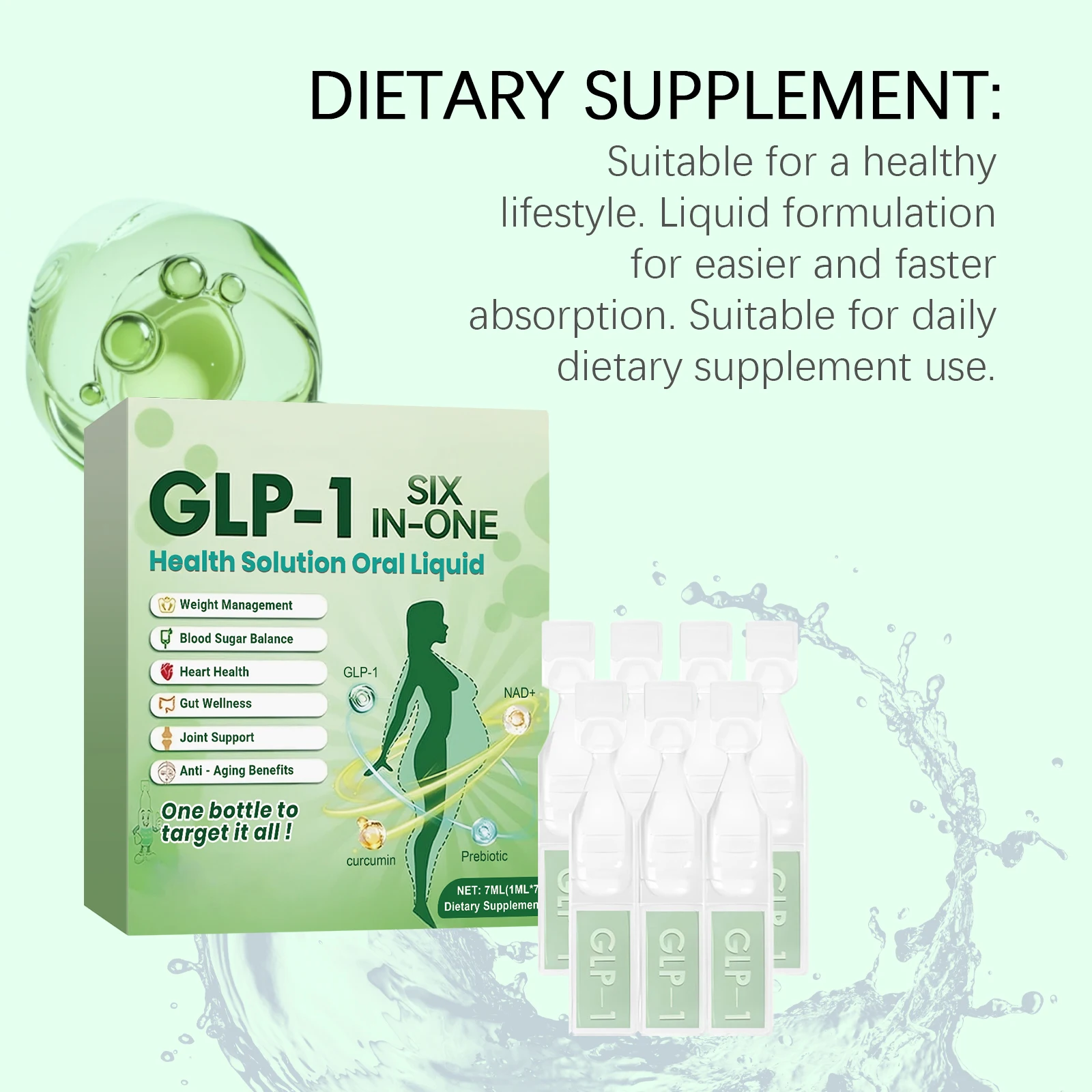 6 in 1 GLP-1 Supplement Liquid Drops Weight Management Blood Sugar Balance Digestive Health Knee Joint Support Slimming Body 7ml