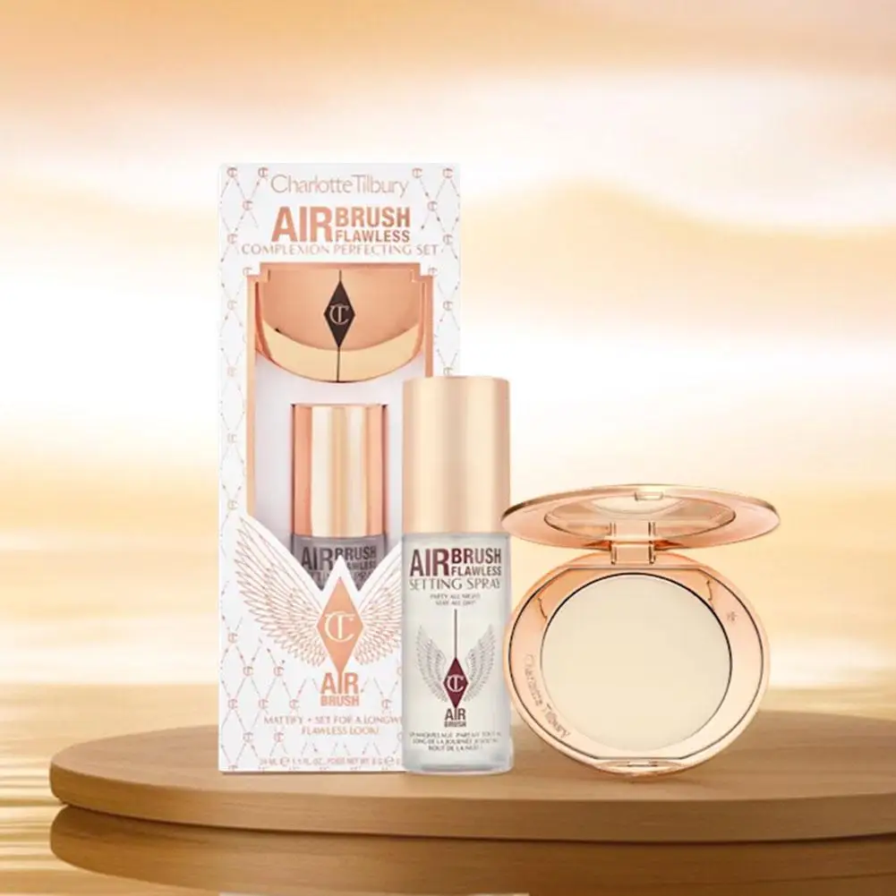 1. Lightweight setting spray and pressed powder set for a long-lasting matte finish, suitable for all-day touch-ups.