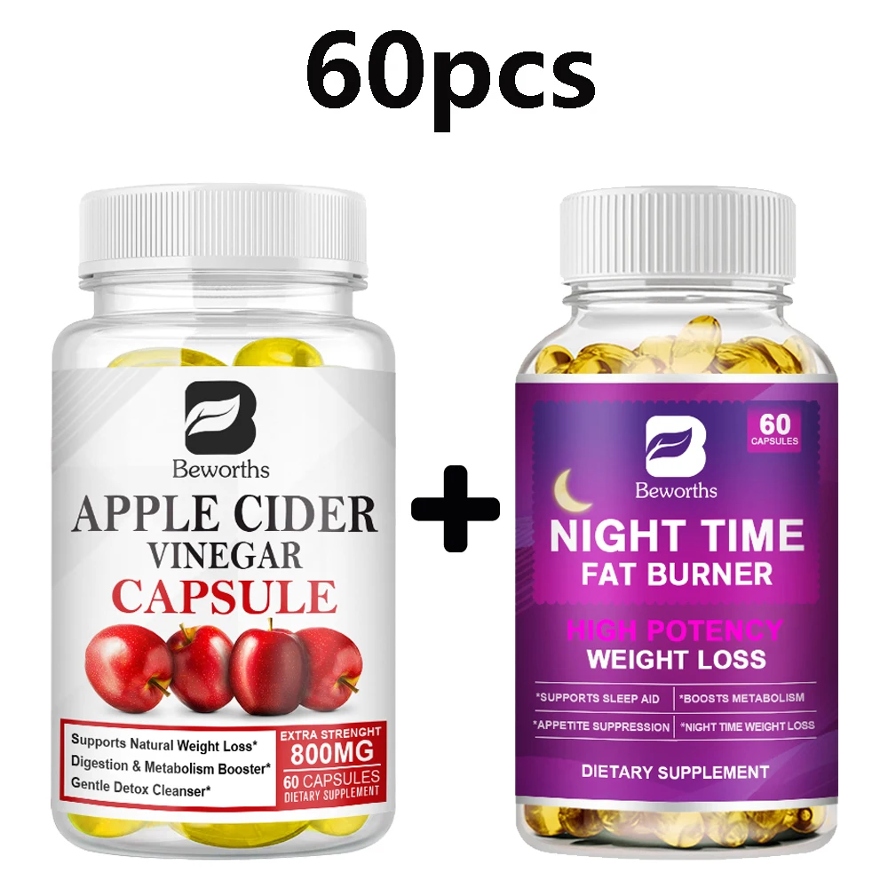 HOT 2Pcs Night Weight Loss & Apple Cider Vinegar Capsules for Digestion,Detox,Immune-Powerful Cleanser & Appetite Suppressant